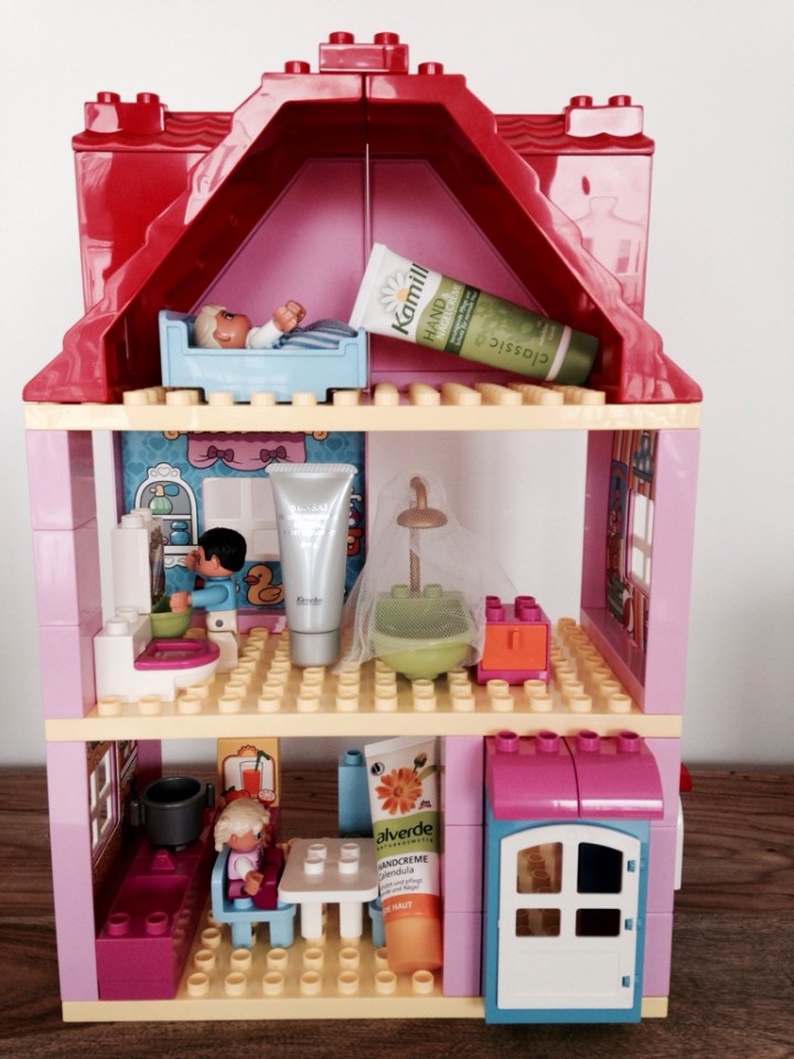 Damit unsere Hände gut durch den Winter kommen, müssen wir sie also intensiv und regelmäßig pflegen. Im Grundsatz nichts neues, nur vergessen wir es ständig und wenn wir dran denken, haben wir gerade keine Creme zur Hand. Als Erinnerungsstütze und weil es praktisch ist, habe ich meine Handcreme darum jetzt überall in der Wohnung verteilt: Eine Tube steht im Bad, eine neben dem Bett, eine auf dem Wickeltisch und eine in der Küche neben der Spüle. Achja: in der Wickeltasche, der Handtasche, der Sporttasche und der Reisetasche ist natürlich auch jeweils eine Minipackung.